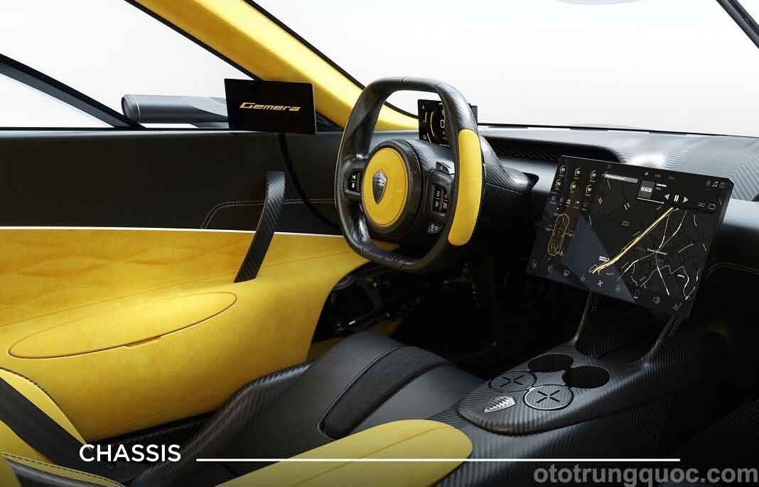 Tất cả các thành phần cấu tạo trên thân xe đều làm bằng sợi carbon, Gemera không có cột B, hàng ghế trước bên phụ có thể đáp ứng việc lên xuống của hành khách ở hàng ghế sau mà không cần phải di chuyển. Đáng chú ý là chiều dài toàn bộ xe lên đến 3m.